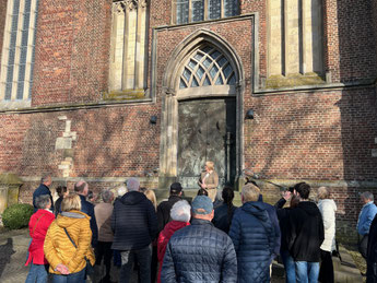 Je nachdem, ob man vor der Kirche oder z. B. dem Torbogen steht, werden die entsprechenden Redewendungen genannt und Geschichten erzählt, die dahinterstecken.