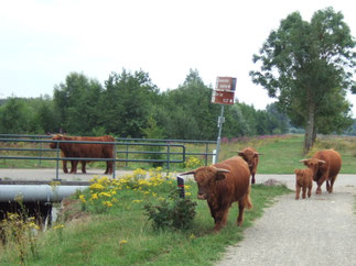 Die Fahrt führt zunächst durch die einzigartige, von Wiesen und Auen, Kopfweiden und Pappeln geprägte Landschaft des Naturschutzparks Rodebach/Roode Beek. Wir passieren dies- und jenseits der deutsch-/niederländischen Grenze nährstoffreiche Sümpfe, blumenreiche Wiesen und sanft gewundene Bäche, die eine Heimat für viele seltene und bedrohte Tier- und Pflanzenarten darstellen. Vielleicht treffen wir auch auf einige der vielen schottischen Hochlandrinder, die auf den Wiesen und in den Wäldern frei grasen.